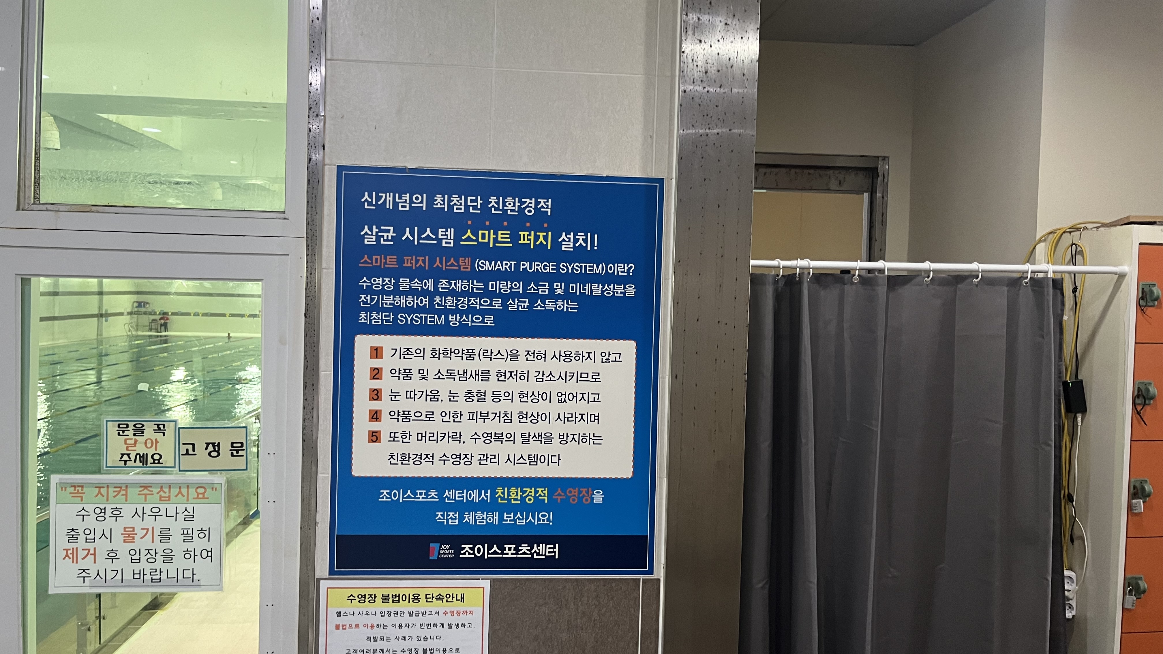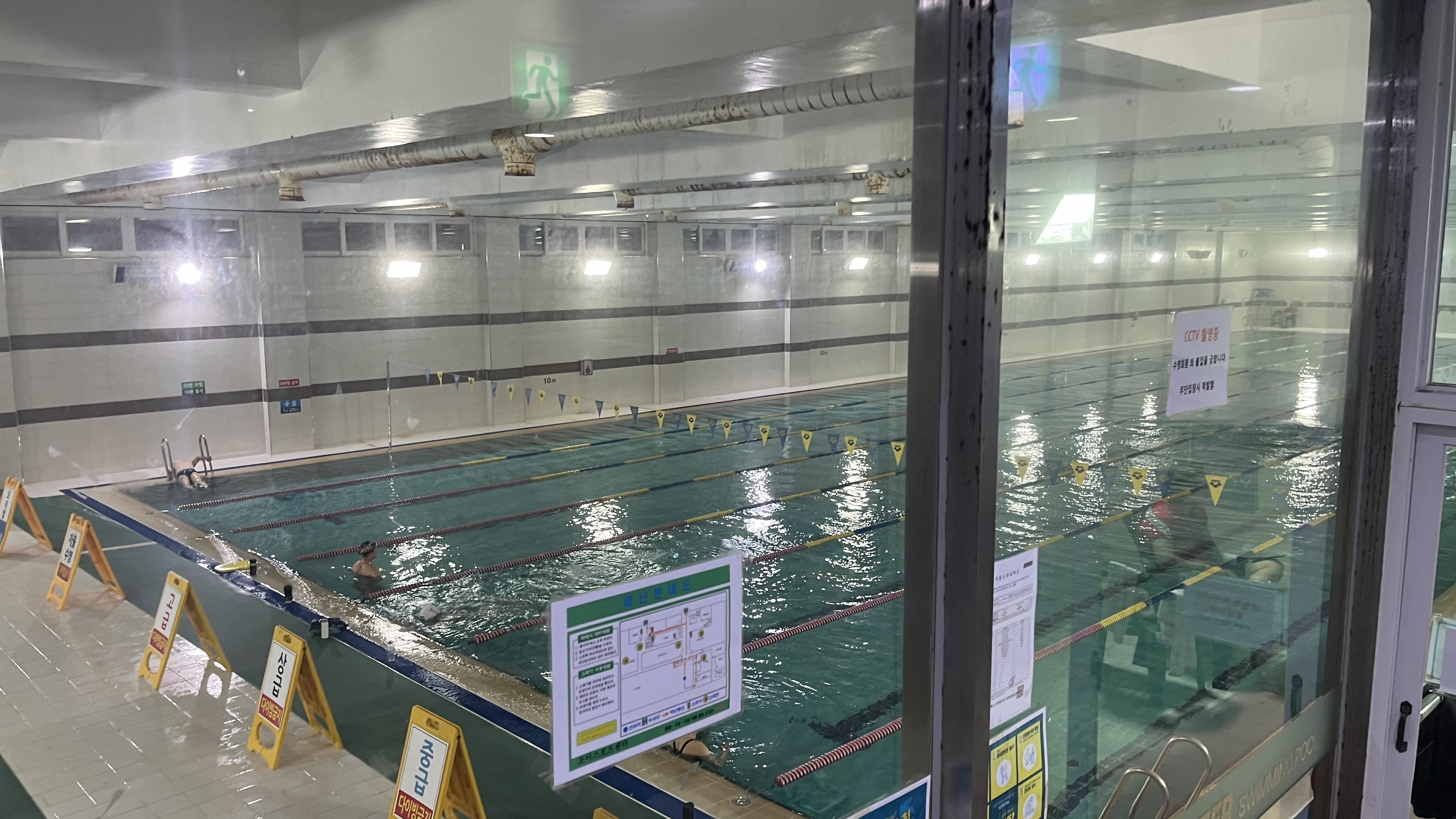 수영장 내부를 마음껏 찍을 수 없었고 , 간혹가다